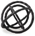 This sculpture brings contemporary art full circle. Interlocking metal rings in a black finish add an art gallery touch for a console table, bookshelf or mantel.