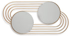 Look at you—times two. If an ultra-contemporary look is the vibe you're going for, then this accent mirror is beautifully on point. A gracefully curved goldtone frame completes the design with a sense of subtle sophistication. What an eye-catching addition to modern or eclectic decors.
