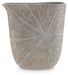 A unique mix of primitive and modern, this vase has an exquisite artisanal appeal. Its wide mouth holds your most bountiful bouquets. The vase’s intriguing silhouette and starburst pattern capture the eye, complementing a room that craves sophistication.