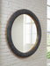 Make a bold impression with this accent mirror. Its captivating blend of brass-tone metal and charcoal-colored leather brings contemporary elegance and depth to entryways, bedrooms or any space deserving of extraordinary style.