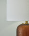 Clearly a contemporary choice. This table lamp wows with understated elegance, thanks to its rich amber-hued glass base enhanced with goldtone accents. Whether your decor is modern or eclectic, you'll love how it lightens the mood and brightens a space.