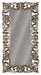 Exquisitely crafted for any glamour queen, this floor mirror is a splendid accent. Antique silver finish brings life to the ornate scroll design.