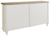 Whether your style is cottage chic, boho inspired or uniquely eclectic, this accent cabinet is sure to look right at home. Standout elements include raised panel door fronts that are a work of art. Wonderfully timeworn in antique white, this 4-door cabinet is topped with a warm brown finish for two-tone interest. Two adjustable shelves add to its practicality.
