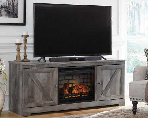 Signature Design by Ashley®Consumer's ChoiceThis TV stand with fireplace insert is sure to win your heart with its daring designer take on modern rustic. The stand’s crisp, clean and minimali...