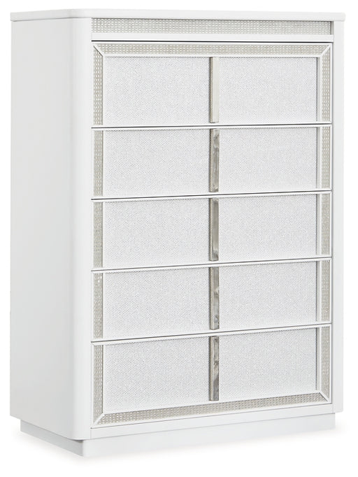 Signature Design by Ashley®If glitz and glam are your jam, you’re gonna love this chest of drawers. Dazzling chrome-tone touches wow against a sophisticated matte white finis...
