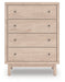 Looking for a chest of drawers that's both playful and practical for your little one? This piece is just the ticket. Its charming design and light wood finish create a whimsical and inviting atmosphere. Four smooth-gliding drawers provide plenty of storage, so there's no excuse for a messy room.