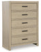 Satisfy your taste for calming, casually cool simplicity with this chest of drawers. More than easy on the eyes, its gray wash finish with warm undertones is highlighted with a white glaze to enhance the wood grain texture. Smooth-gliding storage drawers are accented with stylish metal bar pulls in a contrasting blackened steel finish. It's time to create the understated, relaxed look you want to wake up to every morning.