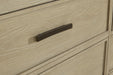 | Details | Made with hardwood solids and MDF substrate, Gray wash finish highlighted with a white glaze; embossed oak wood grain texture, Metal bar pulls with blackened steel finish, 5 smooth-gliding drawers with fully finished interiors, dovetail construction and heavy-duty ball-bearing side glides (top drawer felt lined) | |