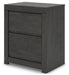 | Details | Made with engineered wood (MDF/particleboard/plywood) and decorative laminate for the right balance of affordability and durability, Dark charcoal finish over replicated oak grain, Decorative laminate replicates natural or man-made material surfaces with consistent color, pattern and texture, Recessed hand grabs create hardware-less effect, 2 smooth-gliding drawers, Drawer interiors are lined with a faux linen laminate for a clean, finished look, 2 slim-profile USB-C charging ports, Power cord included; UL Listed, Assembly required | |