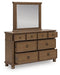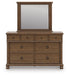 Rowlenstown Queen Poster Bed with Mirrored Dresser