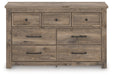 Classically chic. This dresser marries traditional design with modern accents. Its deep brown finish recalls the authentic touch of hickory grain for a rich look and feel. Assorted drawers neatly store your essentials in charming fashion. Sincere in its styling, this piece sets the scene for a warm, welcoming vibe in your bedroom.