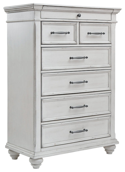 Signature Design by Ashley®Clean, simple and beautiful. This chest provides ample space for clothing, accessories and spare bed linens. Pewter-tone knobs give a slightly indu...