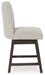Dressed to thrill, this counter height bar stool offers a high-design look at a down-to-earth price. Ultra-sleek lines are accentuated with a dark waxy brown oak-tone finish that’s so easy on the eyes. Suitably upholstered in a tweed-like neutral fabric, the softly contoured back design is tailor-made for comfort. Whether it's part of a dining arrangement or used as extra seating, this timeless bar stool has a look that’s made to last.
