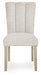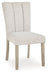 This dining chair reflects your highly contemporary point of view. Its easy-to-clean Next-Gen Nuvella™ upholstery in soft gray is a feast for the senses. Channel stitching details give the chair a tailored feel. What a delicious choice for an elegantly elevated dining room.