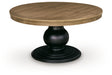 | Details | Includes dining table top and base, Made with hardwood solids, rustic hickory veneer and MDF substrates, Rich natural wood-tone finish enhances the beauty of the wood grain, Pedestal base with matte black finish, Seats up to 6, Assembly required | |