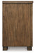 Details Made with hardwood solids, oak veneer and MDF substrate, Two-tone finish (light brown and darker rich, warm brown), Metal bar pulls, 3 cabinets, each with an adjustable shelf, Cutouts for cord management, Assembly required