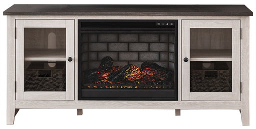 Signature Design by Ashley®Consumer's ChoiceThis TV stand with fireplace insert is the ultimate statement piece for a coastal cottage or shabby chic inspired retreat. Whitewashed finish is wo...