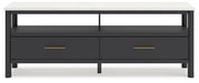 This TV stand reflects your sophisticated approach to boho style. Crafted with both form and function in mind, its replicated marble top beautifully contrasts a matte black finish. Ambient lighting and drawers for media storage make it a chic and convenient living room companion. And the versatile design suits all-neutral spaces or blends with your favorite pops of color. It’s inviting, yet posh. Luxe, yet laid-back. With this TV stand, your free-spirited vibe meets modern design.