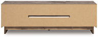Nostalgic style, retooled for today’s trends. This TV stand puts an elevated twist on mod aesthetics. Its warm brown tones reflect the mid-century vibes you love, while the angular base incorporates contemporary motifs. Integrated drawer handles round out the look in sleek style. With this TV stand, you can build your living room into a modern haven with a touch of retro-cool flair.