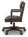 | Details | Made with solid wood frame, Dark brown wood-tone finish, Foam cushioned seat and backrest with faux leather upholstery, Adjustable height, Casters for easy mobility, Assembly required | |