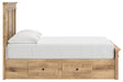 Looking to create a bedroom that feels airy and beautifully put together? This casually comfy full panel storage bed is your perfect solution. Its clean lines, replicated oak grain and on-trend natural finish exude a charming cottage-inspired feel that brightens your restful retreat. Spacious drawers with dark bronze-tone knobs stow away clothes and more. Now there’s a fresh take on country living we can get behind.
