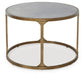 | Details | Made with tubular steel frame, Durable powder coat finish with antiqued goldtone texture, Inset tempered glass top with faux marble finish | |