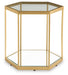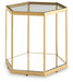 With a sleek goldtone frame accenting glass and mirror insets, this striking accent table combines the very best of modern design. Whether you use it to display decor or hold your favorite drink, the hexagonal design makes it a true standout piece in your cosmopolitan-chic space.