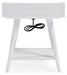 | Details | Made of wood and engineered wood, White finish, Gallery rail top, Fixed shelf, 2 USB charging ports; power cord included, Assembly required | |