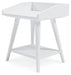 Display your decor with simple style on this accent table. Constructed of wood and engineered wood in a crisp, white finish, this table blends easily with your existing living room aesthetic or stands in as a kid's bedside table. A gallery rail top, undermount shelf and dual USB chargers keep your life (and your look) simply sensational.