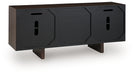 This accent cabinet expertly blends function with stunning contemporary form. Its clean, linear design is draped with an inviting medium brown finish. An angular base further emboldens the look with forward-thinking style. Storage has never been so striking.