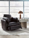 | Details | Corner-blocked frame with metal reinforced seat, One-pull reclining motion, Attached cushions, High-quality foam cushions wrapped in poly fiber, 100% top grain leather covers inside areas such as the back, seat and arm cushions; skillfully matched faux leather covers the remaining areas, Due to its natural origin, real leather can show individual characteristics such as healed scars, growth marks, grain variation and shade variation, Natural variations make each hide unique and do not detract from the wearing qualities of leather, Gentle gliding motion, 360-degree swivel | |