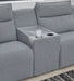 | Details | Includes 6 modular pieces: left-arm facing power recliner, 2 armless chairs, console, wedge and right-arm facing power recliner, "Left-arm" and "right-arm" describe the position of the arm when you face the piece, Versatile modular pieces fit together in a variety of configurations, One-touch power control with adjustable positions, Easy View™ adjustable headrest and zero-draw USB port, Zero-draw technology only consumes power when the USB receptacle is in use, Corner-blocked frame with metal reinforced seat, Attached back and seat cushions; high-quality foam cushions wrapped in poly fiber, Polyester upholstery; Next-Gen Nuvella™ is a family-friendly fabric that is soft, easy to clean, stain-resistant and durable, Clean fabric with mild soap and water, let air dry; for stubborn stains, use a solution of 4 oz. bleach to 28 oz. water, Throw pillows with easy-to-remove zippered covers for machine washing; pillows with soft polyfill, Console with plexiglass top and 2 cup holders, Zero wall recliner design requires minimal space between wall and chair back, Power cord included; UL Listed | |