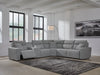 Details Includes 6 modular pieces: left-arm facing power recliner, power armless recliner, armless chair, console, wedge and right-arm facing power recliner, "Left-arm" and "right-arm" describe the position of the arm when you face the piece, Versatile modular pieces fit together in a variety of configurations, One-touch power control with adjustable positions, Easy View™ adjustable headrest and zero-draw USB port, Zero-draw technology only consumes power when the USB receptacle is in use, Corner-blocked frame with metal reinforced seat, Attached seat and back cushions; high-quality foam cushions wrapped in poly fiber, Polyester upholstery; Next-Gen Nuvella™ is a family-friendly fabric that is soft, easy to clean, stain-resistant and durable, Clean fabric with mild soap and water, let air dry; for stubborn stains, use a solution of 4 oz. bleach to 28 oz. water, Throw pillows with easy-to-remove zippered covers for machine washing; pillows with soft polyfill, Console with plexiglass top and 2 cup holders, Zero wall recliner design requires minimal space between wall and chair back, Power cord included; UL Listed