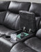 This reclining sectional pairs the luxe look of faux leather with must-have functional features. LED lights on the underside put a modern twist on the simply chic design—choose from three colors to add ambiance to movie night or gaming with friends. And you can keep remotes, drinks and other entertainment essentials close with the handy console. Ready to relax? Easy pull tab reclining has you stretched out in no time.