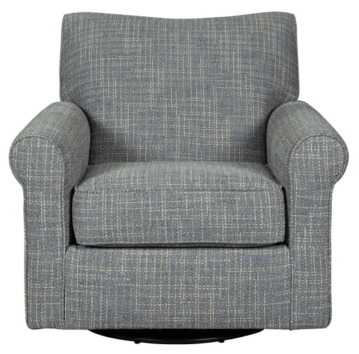 Signature Design by Ashley®Sporting a tantalizing tweed weave fabric in such a soothing blue hue, this swivel glider accent chair gives the classic roll arm chair a modern tw...