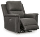| Details | One-touch power control with adjustable positions, Easy View™ adjustable headrest and zero-draw USB-A and USB-C ports, Zero-draw technology only consumes power when the USB receptacle is in use, Zero-gravity mechanism allows optimum reclining comfort with infinite reclining positions at the touch of a button, Corner-blocked frame with metal reinforced seat; attached back and seat cushions, High-quality foam cushions wrapped in poly fiber, 100% top grain leather covers inside areas such as the back, seat and arm cushions; skillfully matched faux leather covers the remaining areas, Due to its natural origin, real leather can show individual characteristics such as healed scars, growth marks, grain variation and shade variation, Natural variations make each hide unique and do not detract from the wearing qualities of leather, Zero wall recliner design requires minimal space between wall and chair back, Zero gap mechanism maintains consistent lower back and lumbar support throughout every stage of reclining for the ultimate relaxation experience, Power cord included; UL Listed | |