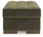 This sleek oversized accent ottoman offers a highly contemporary look with plenty of space to spread out. Dramatic tufted detailing and luxurious upholstery in a rich olive color create a sophisticated atmosphere. This ottoman is perfect for those who love to entertain, or simply relax, in uptown style and comfort.