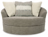Easy on the eyes, this oversized swivel accent chair rounds out your seating options with ease. Its generous scale cradles you in comfort, while the swivel feature lets you go with the flow. A collection of coordinating accent pillows adds to the indulgence.