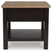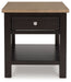 When you’re styling your living room, convenience is key. With this end table, casual flair meets can’t-miss function. Tired of tracking down lost remotes? A handy storage drawer keeps your entertainment essentials close. This fashionably functional piece pairs a dark chocolate brown with a light wood tone, complementing a variety of color palettes.