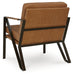 Work an ultra-cool look with this accent chair. A linear metal frame in a bronze-tone finish lets your love of contemporary style shine. Tailored cushions and armrests wrapped in sumptuous caramel-colored leather enhance this piece’s feel-good touch.