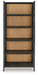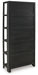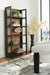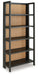 Details Made with solid and engineered woods, Rattan back with natural finish, Sandblasted black finish, 5 fixed shelves, Assembly required