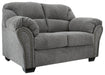 Why sacrifice comfort for style (or style for comfort) when you can have the best of both in this loveseat in pewter gray. Elements include a chic divided-back design and pillow top wrapped armrests that make nodding off all too easy. Calling attention to the elegantly flared armrests—black nickel-tone nailhead trim for a punch of cool character.