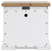 Casual style with substance. This two-tone nightstand raises the bar on comfortably cozy design in your soothing sanctuary. A sturdy silhouette with a classic white finish and black metal hardware exudes modern farmhouse vibes. The butcher block oak veneer top adds a relaxed aesthetic. And bedside charging for your go-to devices is made easy with power outlets and USB ports.