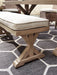 Sporting an easy-on-the-eyes look inspired by driftwood, this bench with cushion elevates the art of alfresco living. Beautiful and durable enough for indoor and outdoor use, the casually cool seating entices with striking X-leg farmhouse styling and a plush, removable cushion wrapped in high-performing Nuvella® fabric that’s a breeze to keep clean.