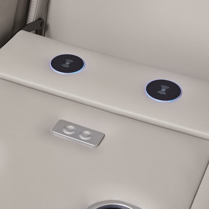 Ready to take your reclining experience to the next level? Then sit up and take notice. With this power reclining sofa, ultimate relaxation is at your fingertips. Experience the pure bliss of an air massage system and heated seats at the touch of a button. The center seat is crafted with a drop-down table with wireless charging and dual cup holders. Plus the luxurious diamond-stitched upholstery is easy on the eyes, adding elegance to any space.