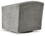 | Details | Charcoal gray faux fur polyester upholstery, Barrel back, Tight seat cushion, Metal swivel base, 360-degree swivel | |