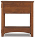 All the great elements of Mission-style design—including mortise-and-tenon decorative overlays—packed into an adorably sized chairside end table. Small but essential, this accent table includes a deep drawer with removable tray for handy storage.