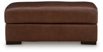 Effortlessly stylish, indulgently comfortable. This ottoman encourages everyday relaxation with an invitingly plush, spacious cushion. It embodies affordable luxury, pairing the sleek appeal of top grain leather with expertly matched faux leather. Suiting spaces from casual to contemporary, the ottoman's universal appeal makes staging your space nearly effortless.