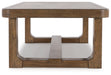 This coffee table sits comfortably at the intersection of modern lodge and farmhouse aesthetics. Your warm and welcoming disposition is reflected in the charming architectural elements and light brown glazed finish. Even with its poise, this coffee table remains practical. Its softly rounded corners keep kids safe and your living room stylish.