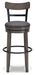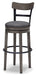 Bring a relaxed yet refined sense of good taste to a space with this upholstered swivel bar stool. The sturdy wood frame with contoured backrest is beautified with an antiqued gray wash finish that’s easy on the eyes. Rest assured, this bar stool caters to your comfort with a cushioned seat with gray textured fabric accentuated with nailhead trim. Sensible swivel design keeps you in the flow of conversation.